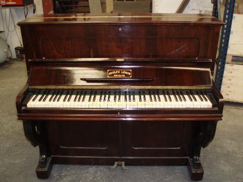 Piano centenario (1989 aprox.) En perfecto estado.  La madera está impecable, color cerezo y de muy buena calidad. Marca ADOLPH LERCH BARCELONA. Teclas de Marfil. Funciona.